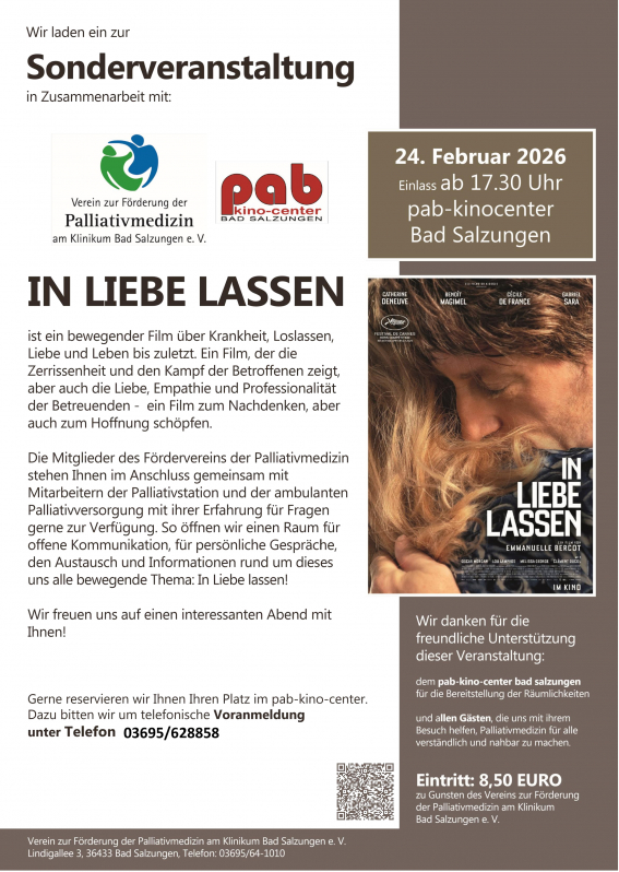 SONDERVERANSTALTUNG mit dem Verein zur Förderung der Palliativmedizin am Klinikum Bad Salzungen e.V.